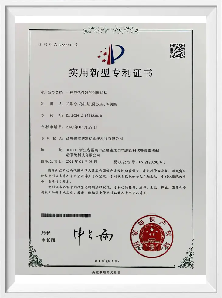 Komponen utama dalam perhimpunan, seperti cakera brek/gendang, pad geseran, dan kaliper, dibina dari bahan-bahan khusus, suhu tinggi, dan tahan haus (seperti cakera pengudaraan karbon tinggi, pad brek berasaskan seramik, dan gendang besi fosforus tinggi). Ini memastikan sistem mengekalkan daya brek yang stabil dan kuat walaupun di bawah suhu tinggi yang dihasilkan oleh brek yang kerap, dengan rintangan yang sangat baik terhadap pudar terma.
