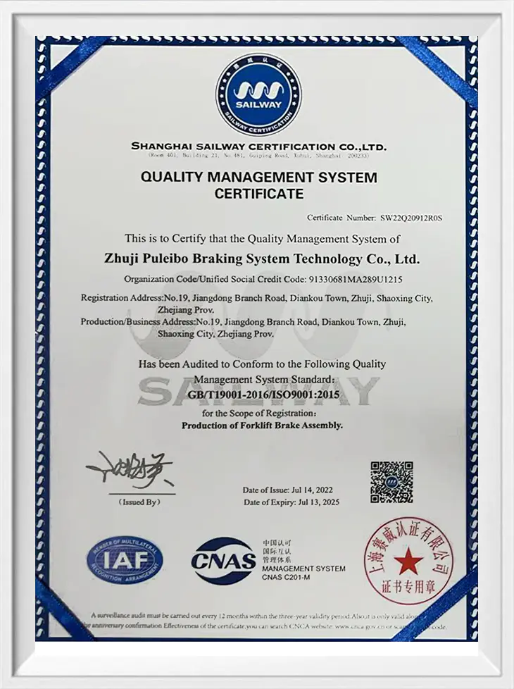 Perhimpunan brek Hangzhou Forklift 4.5 tan secara khusus direka bentuk untuk forklift 4.5-ton, me...